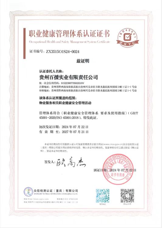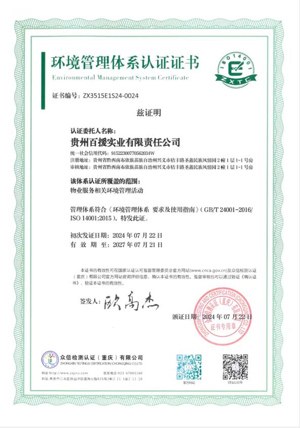 恭喜我公司服务的企业贵州百援实业有限责任公司iso三体系成功下证!!