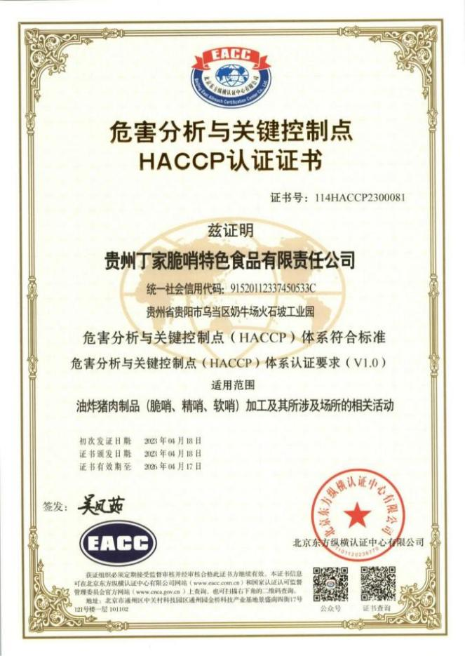 恭喜我公司服务企业贵州丁家脆哨特色食品有限责任公司等haccp成功下证!!