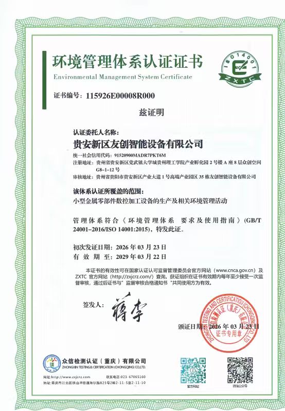 贵安新区友创智能设备有限公司iso14001环境管理体系认证