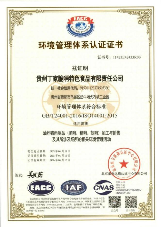 - 恭喜我公司服务企业贵州丁家脆哨特色食品有限责任公司等haccp成功下证!!