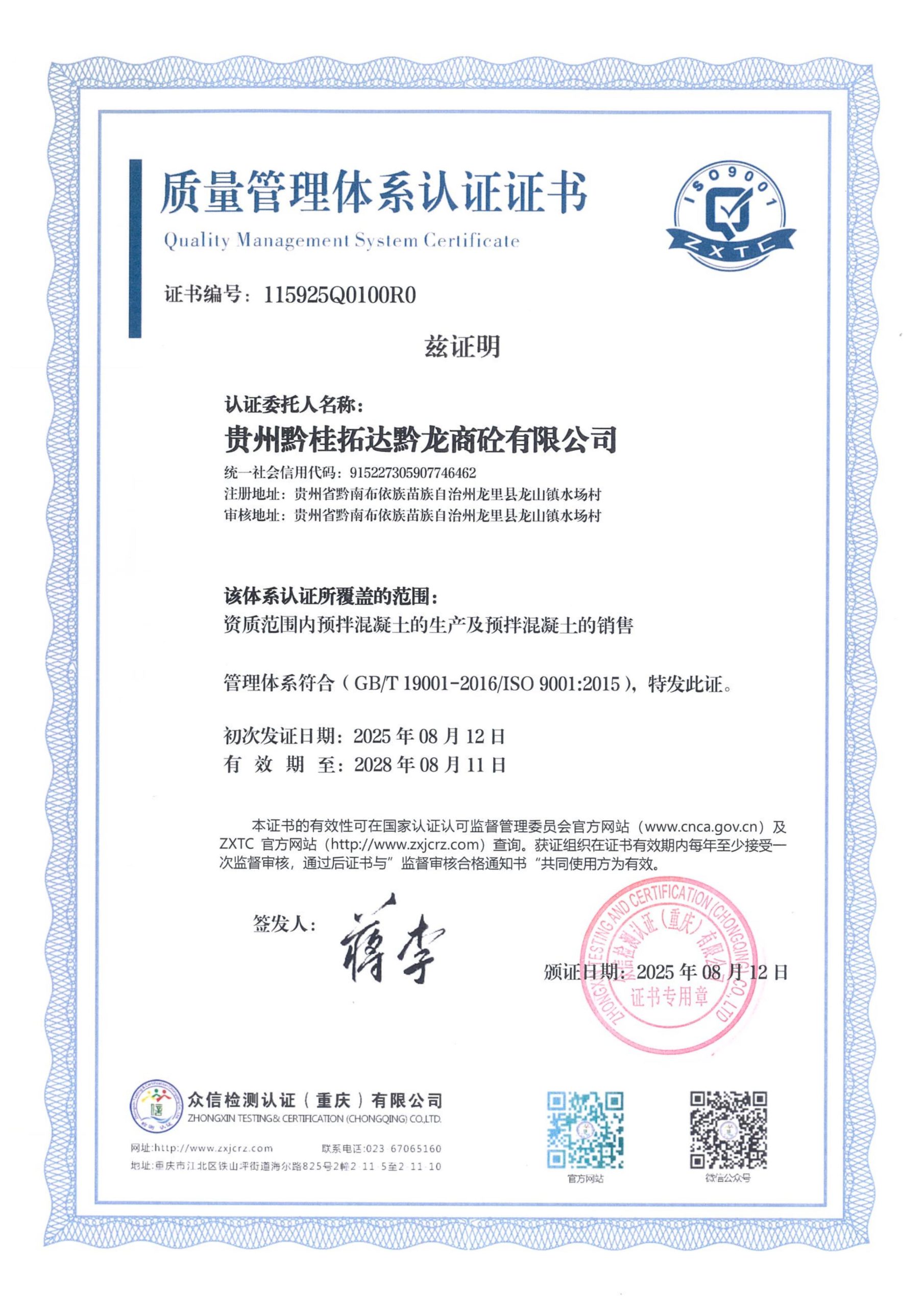 贵州黔桂拓达黔龙商砼有限公司