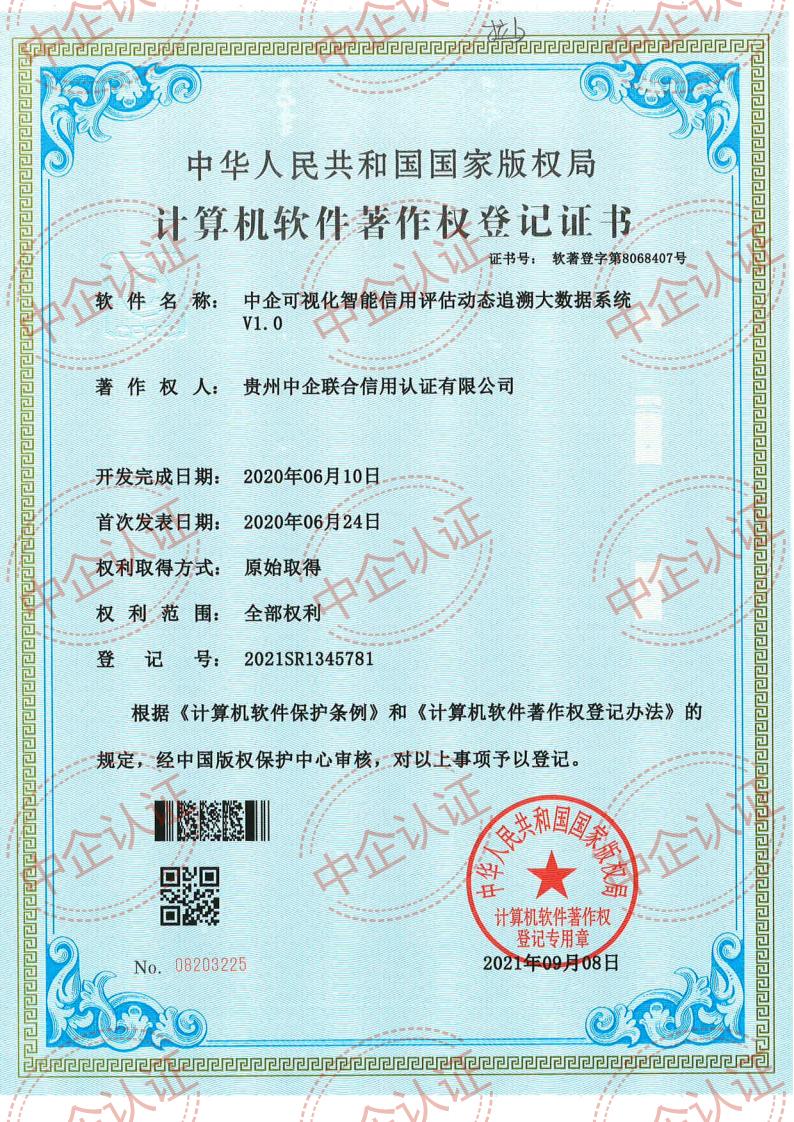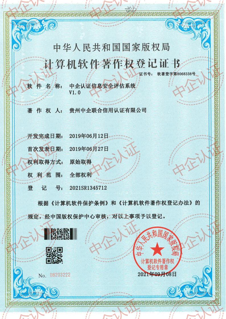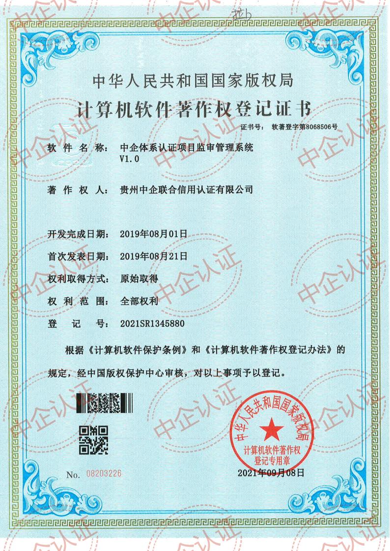 贵州中企联合信用认证有限公司坚持以科技创新驱动公司长远发展,公司致力于企业信用产业服务、iso体现认证、知识产权代理服务、政策项目申报服务,公司自主研发的企业一站式服务平台助力中小企业发展。公司成功申请了软件著作权。